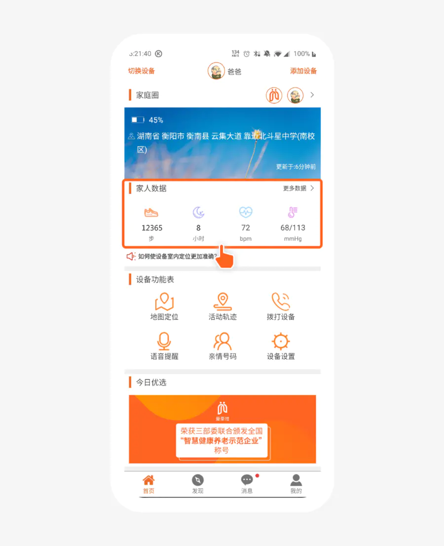 爱牵挂优质的远程服务,也是福子对X5感到满意的地方之一。X5具有健康监测功能,福子每天都能在爱牵挂APP上查看妈妈的健康数据,心率、血压、步数、睡眠等。