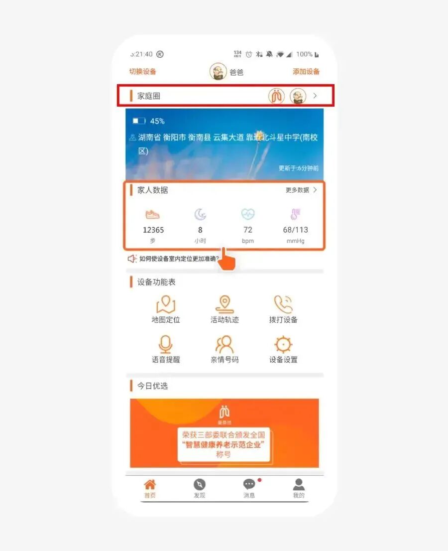 S3具备健康监测功能,每天都会自动生成健康数据上传到爱牵挂APP,彭彭一家都能通过同一个家庭圈看到姐姐一天不同时间段血压、血氧、心率的健康数据,并将当天数据与近段时间的数据作对比。