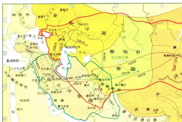 另一方面,这次西征从拔都的领地出发,他成了西征的主要受益者。到1242年西征结束时,新征服的土地都被纳入拔都的兀鲁思——就连他的统治中心也转移到伏尔加河下游一带。由于拔都及其继承者总是按照草原民族的习惯居住在金顶帐篷里,这一兀鲁思也就被习惯地称为“金帐汗国”。