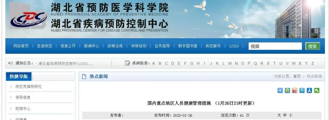 国内重点地区人员健康管理措施 (1月26日21时更新)