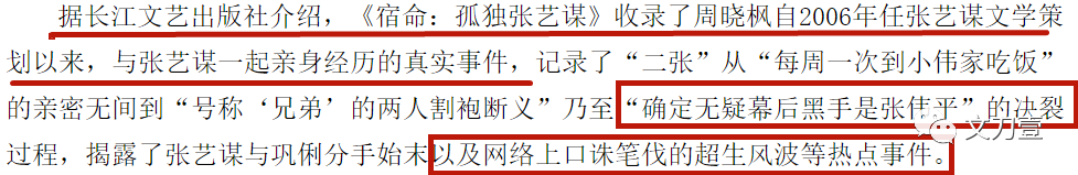 周晓枫出书中揭露了张艺谋与巩俐的分手真相,而背后的“黑手”正是张伟平夫妇。
