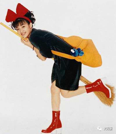 头上别着大蝴蝶结,身披斗篷,带一把扫帚,这是范晓萱出场时的标配。