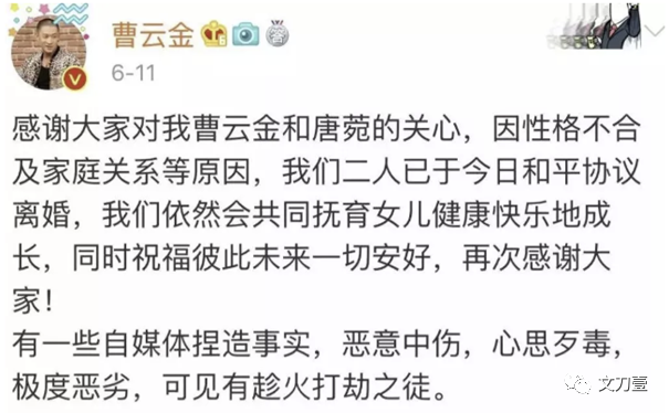 但曹云金的态度坚决,根本不给这段婚姻缓和的余地,