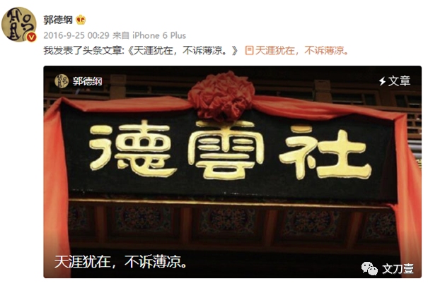 郭德纲在结尾写道:既如此,便如此。