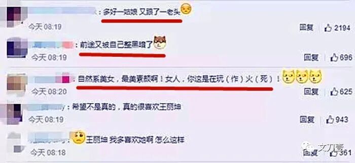 随着绯闻传出的,还有对于王丽坤的各种攻击言论。