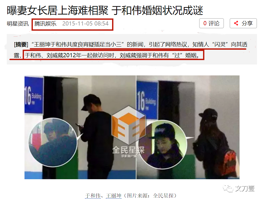 “于和伟和刘威葳曾于12年采访时,刘威葳强调于和伟有'过'婚姻”。
