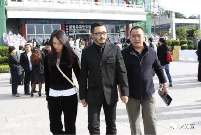 葬礼上,富大龙和妻子一同黑衣加身,到场缅怀这位曾经的贵人。