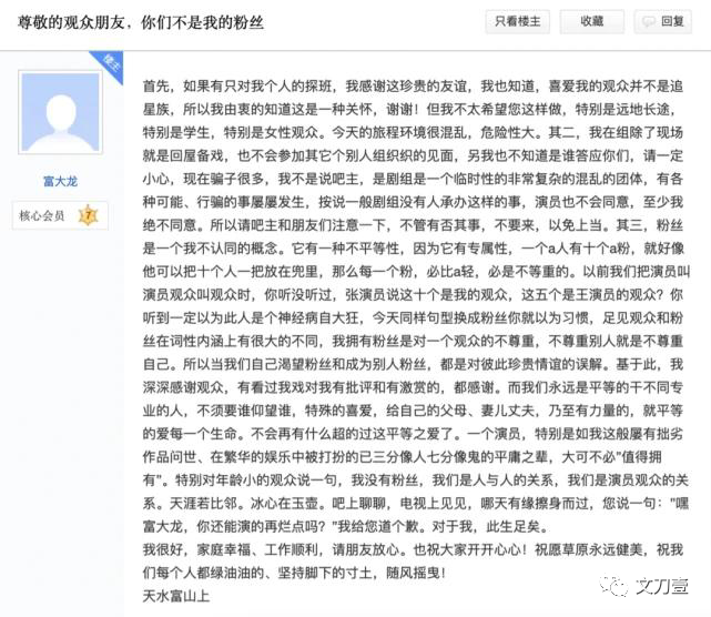 和粉丝站在旗鼓相当,平起平坐的位置。富大龙从没把自己当个人物,而是归于平庸。