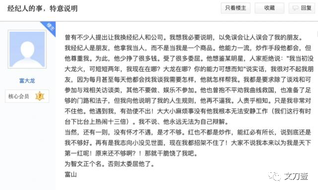 但富大龙绝不允许大家这样做,于是他站出来,为经纪人和公司说话。