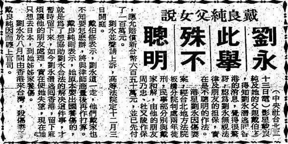 戴家人得知这件事后怒不可遏,趁着刘永外出拍戏的空档,把女儿接回了台湾。