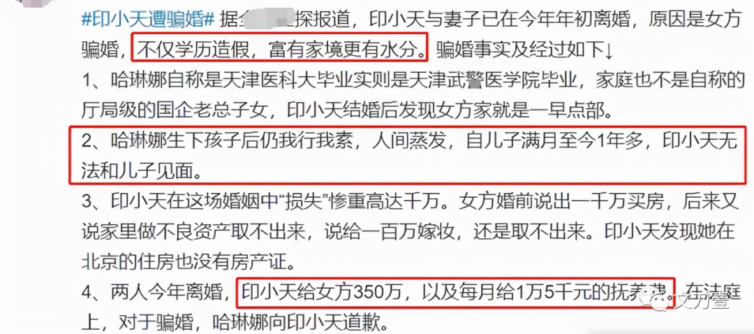 先来说说印小天被“骗婚”一事,究竟从何而来?