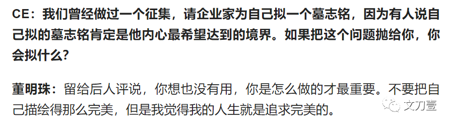 令人意想不到的是,面对这样的提问,董明珠回答的却是:“我把它留给后人评说。”