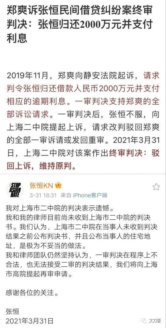 当这段风波慢慢平息下来后,张恒因为无法接受二审结果,再度放出猛料。