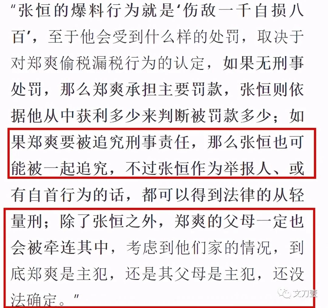 有律师解读,根据张恒的爆料,如果郑爽真的涉及偷税漏税,那她的父母也会被牵扯进去。