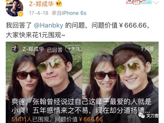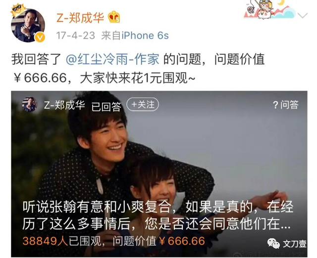 郑爽跟人分手,他开启付费问答来满足自己的虚荣心。