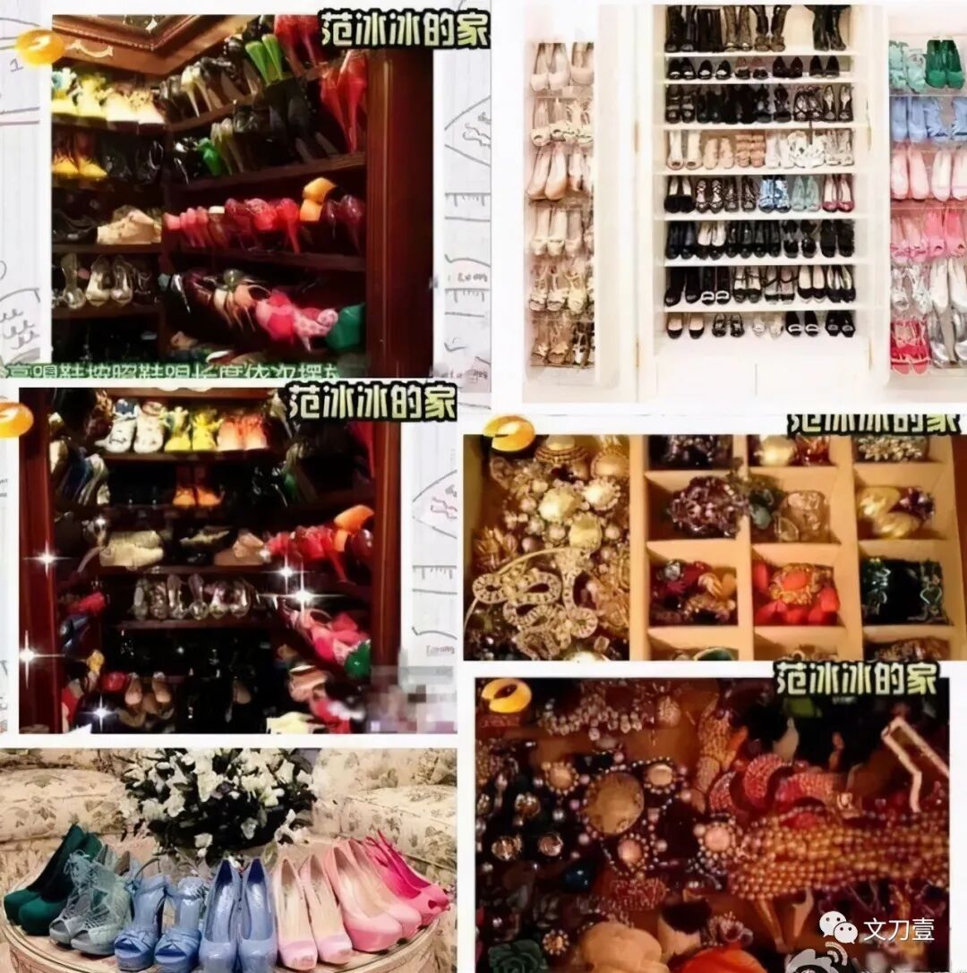 而范冰冰光衣帽间就有200平,放满了珠宝首饰、鞋子包包。