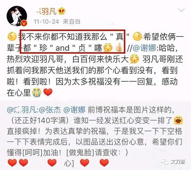 羽凡微博里的“真”“珍”“贞”,最早可以到2011年。