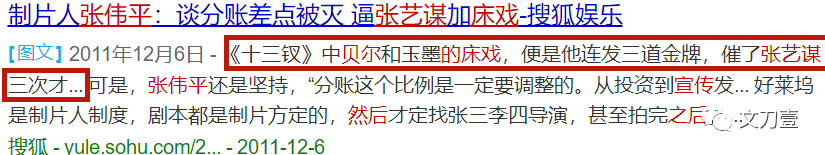 不仅如此,在张艺谋的电影中,张伟平真正投资的电影只有《有话好好说》、《金陵十三钗》两部。