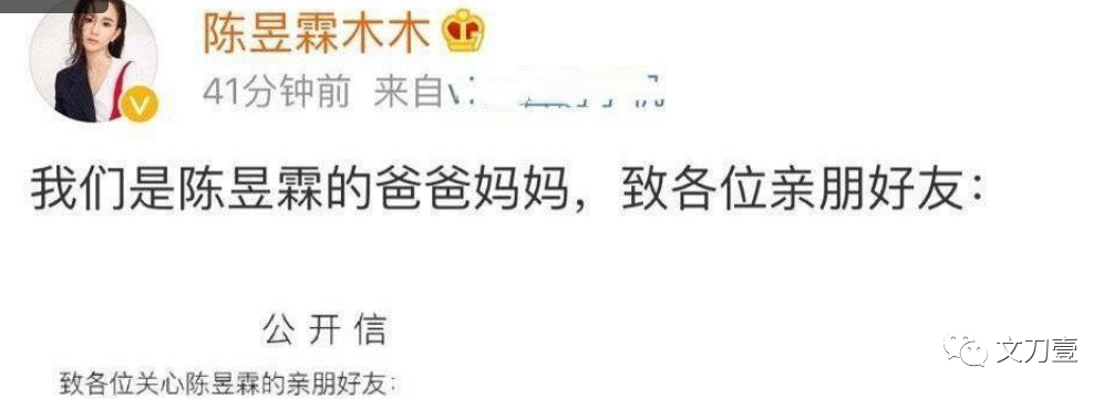 事发之后,女方父母到社交平台求助,称吴秀波先是自愿拿出分手费,又以此栽赃陈昱霖勒索。