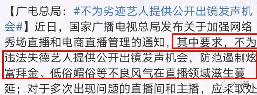 去年12月,这一规定迎来升级,全面禁止违法失德的艺人公开出镜发声。