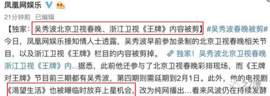但播出后才发现,文章的镜头被删的丁点不剩,而且直接被踢出了演员表,好似从未参演过。