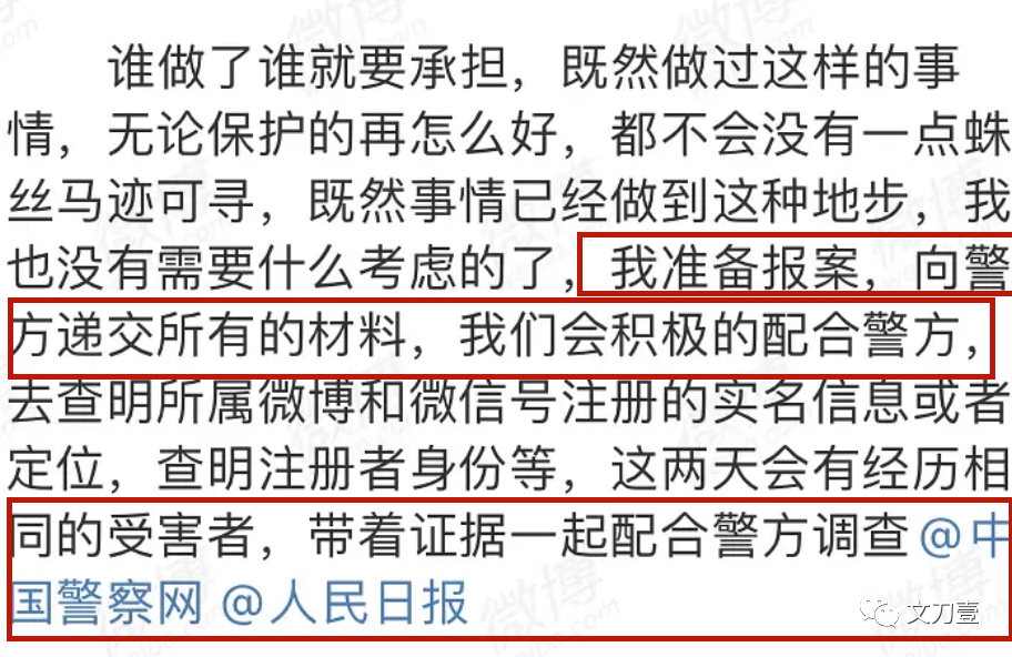 在爆料之后,都美竹称自己已经报警,因为涉及未成年人,此事将交由警方处理。