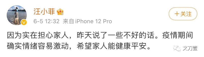 6月5日中午,汪小菲称自己因为担心家人,说了过激的话,似乎在向大S求和。