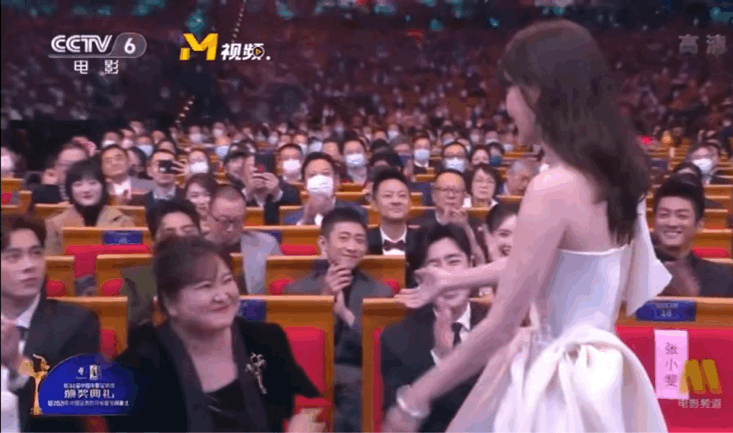 上台领奖时,她双手提起裙摆的模样很是生疏,彼时的她已是“顶流”般的人物,可是那种惴惴不安是真实存在的,甚至是有些生涩。