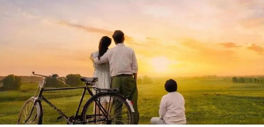 影片中,一家人依偎在夕阳下的堤坝草地上,那是贾玲家祖坟上的堤坝。