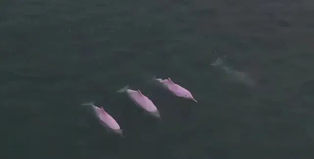 5只粉色海豚时而并头游动,时而欢快嬉戏的场景恐怕只出现在童话故事里。