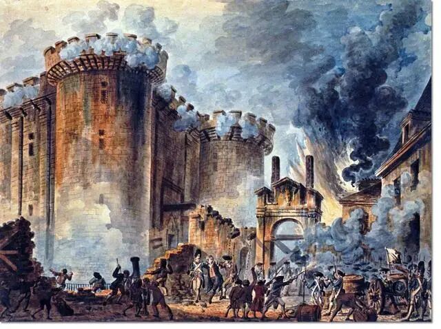围攻巴士底狱表面上是为了释放囚犯,尽管当时只有几名囚犯在押,其实主要是为了夺取武器。尽管如此直到在8月4日国民议会才做出了真正的激进变革,他们基本废除了君主制封建权利,什一税、贵族特权、不平等课税都被废除了。然后到8月26日国民议会发布了‘人权与公民权宣言’,展现了一个立足于每一个民众的权利制度,而且使这些权利成为新宪法中不可缺失的一部分。这一点非常有别于美国的‘权利法案’,似乎不情愿地将公民权附加在了结尾并且不包括奴隶人口'人权宣言‘。路易十六仍然是法国的合法国王,似乎法国将会变成一个君主立宪制国家。也就是说皇室成员们依旧可以生活在他们奢华的宫殿中,但到1789年十月有流言称玛丽.安托瓦内特正在宫殿内私藏粮食。于是便发生了’妇女凡尔赛游行‘,大批的武装了的农妇包围了凡尔赛宫,要求路易十六与玛丽.安托瓦内特离开凡尔赛宫迁往巴黎。国王与王后就范了,因为所有人都害怕拥有武器的农妇,同时也很好的提醒了许多人法国大革命的爆发并不是为了实现光鲜亮丽的启蒙思想而更多是为了解决食物短缺以及法国当时经济制对穷人的压榨。