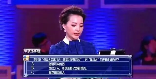 诗词大会给出的正确的答案是B。现场万人团中有34人答错了。能到诗词大会现场的都是有一定文化造诣的人,这么一道简单的题为什么就难住了三十多位高材生呢?