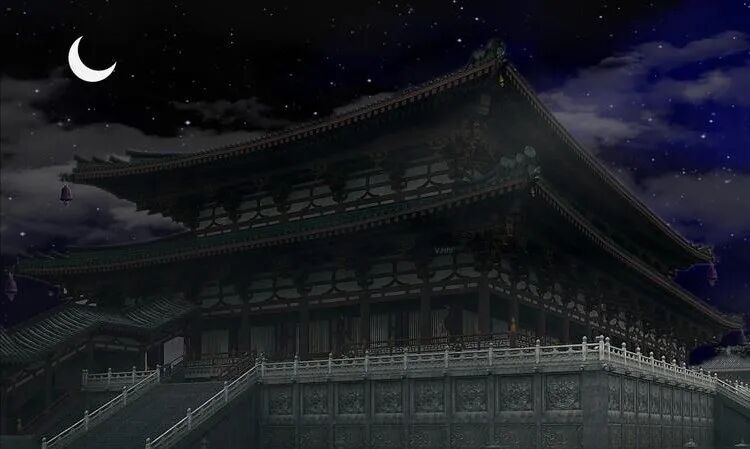 亭台楼阁,听香水榭,民居高矮不一的错落围绕着巍峨的皇宫,街道上不见人影,房屋中半盏灯光。