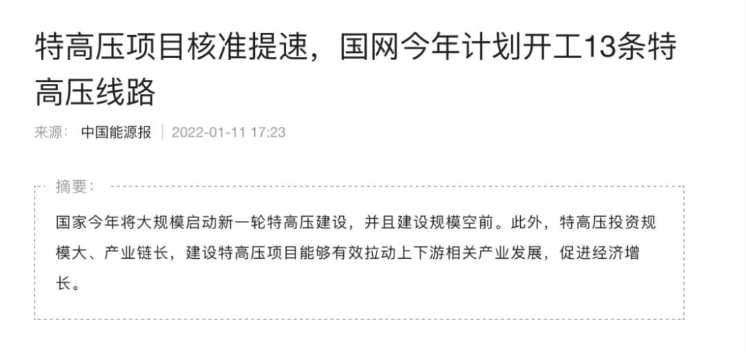 而碳达峰和碳中和又是整体经济转型的总阀门和风向标。这时,我们就可以理解作为2022年和十四五新基建投资的核心板块,为何要重金下注到特高压。