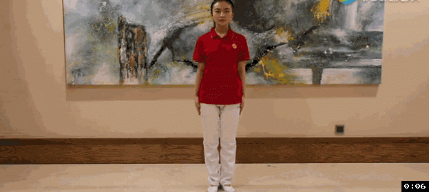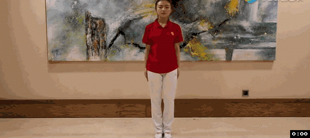 动作要领:身体直立,目视前方,双脚与肩同宽, 双手握空拳放于胸前,胸要挺,肘要撑,左拳捶左胸,右拳捶右胸,交替捶打,慢慢收回。