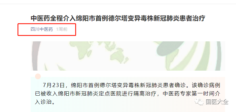 7月23日,四川绵阳首例德尔塔变异毒株新冠肺炎患者确诊,中医药专家第一时间介入诊治,患者服药一天后,体温降至正常,症状明显改善。服药第三天(26日),患者表示身体已无不适症状,各项炎性指标无明显异常。
