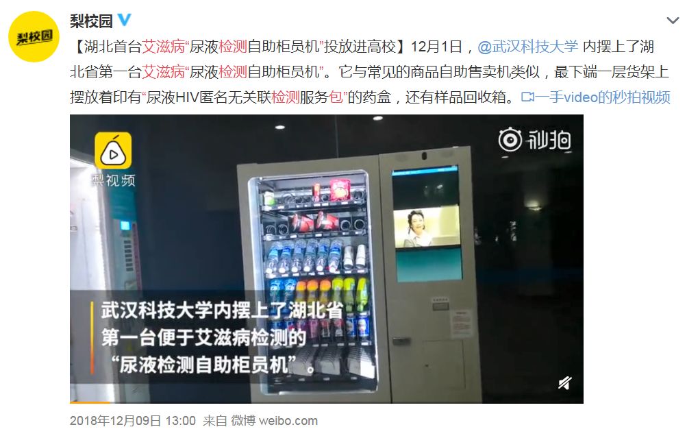 随着艾滋病逐渐被关注,近两年,相继有不少“艾滋病粘液检测自助柜台机”投放在高校,学生可通过匿名的方式购买自行检测,并匿名查询检测结果。