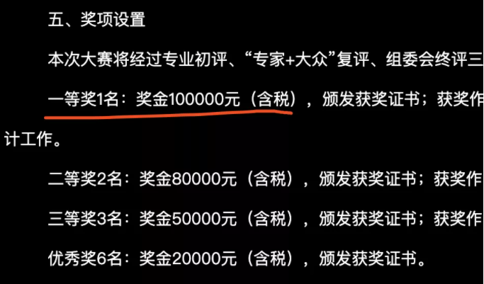 甚至为了鼓励网友踊跃参加,官方还提供了一等奖10万元、二等奖8万元、三等奖五万元、优秀奖2万元的奖金。尤其是一等奖的10万元,实在诱人。