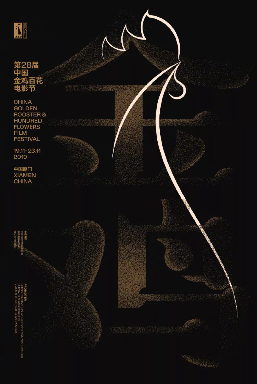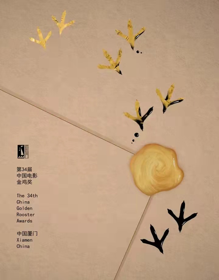胶片元素和中华大地的巍峨群山组成了“金鸡”造型,水墨画的手法很有国风意蕴。