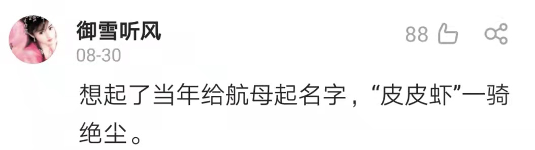 网友当年给航母取名“皮皮虾”的“黑历史”也被扒出来了。