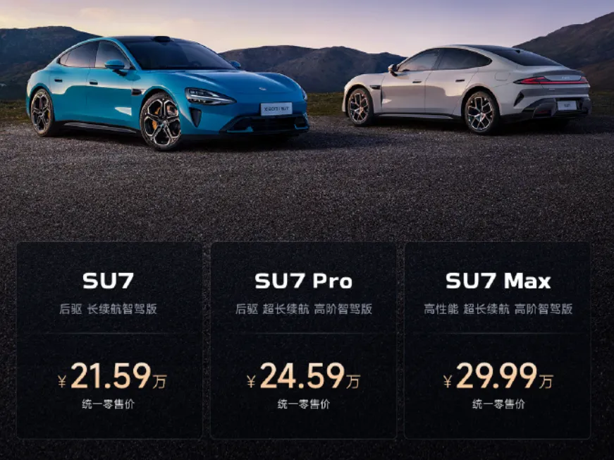 今年3月28日,小米汽车首款车型——小米SU7正式上市,新车共推出标准版、Pro版和Max版三款车型,售价区间为21.59万元-29.99万元,动力上提供双电机版本和单电机版本车型选择。小米SU7定位轿跑车,被称可以媲美保时捷、特斯拉的Dream Car,但绝对不是普通家庭的Dream Car。
