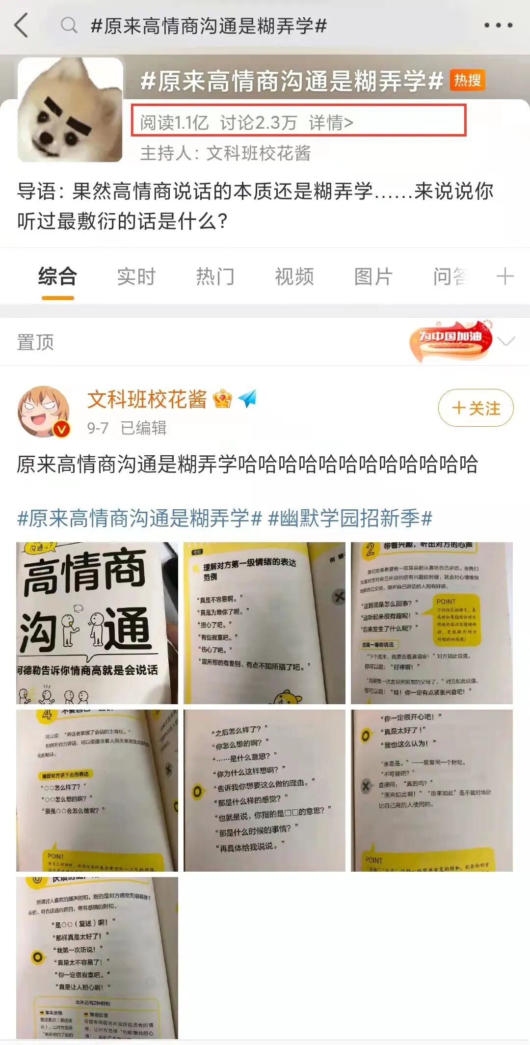 网友们才恍然大悟,以前追崇的高情商话语其实已经是糊弄学的雏形。想了想就心疼,亏我还买了那么多书,甚至还觉得有道理。