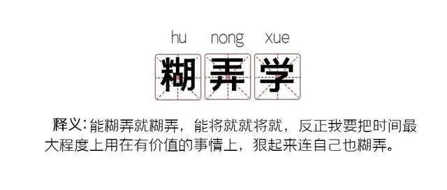 糊弄学的出现,其实是我们由于处在这个不断发展的社交世界,社交和机械化工作的压力过大,自己的私人空间和时间被高速运转的外界所压缩,而且无法适应当前的快节奏生活。这时候,该糊弄时就糊弄。