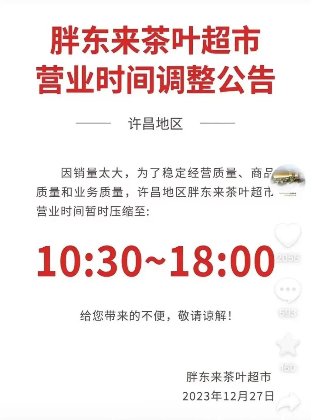 12月初,胖东来就因“超市太火”采取了“下午三点开始限流”的应对措施。