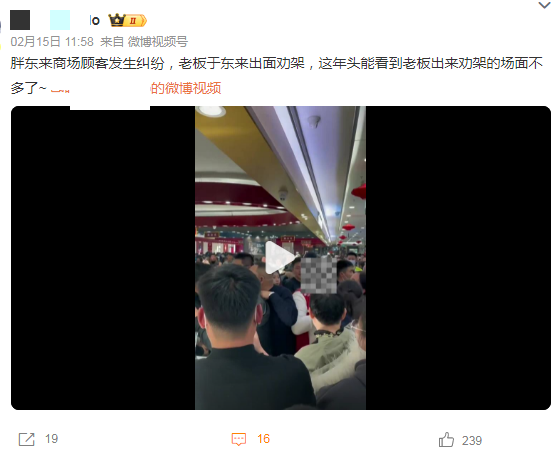 甚至在2月份,胖东来超市发生纠纷,老板于东来亲自出面劝架。