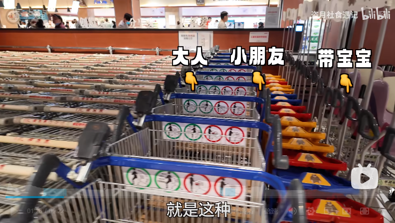 为了回应顾客的多元化需求,胖东来超市独具匠心地设计了七种不同款式的购物车,并清晰指示每种购物车最适合哪些顾客群体使用。