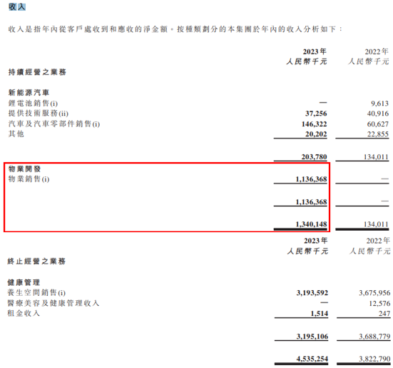 因为这属实不像一家汽车公司的财报,因为2023年度恒大汽车总收入(合计了从客户处收到和应收净金额)约45.35亿元,31.9亿元是健康管理收入,占比70.34%,包含养生空间销售、医疗美容和健康管理收入和租金收入。