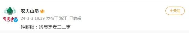 3月3日当晚,农夫山泉公众号发表文章《钟睒睒:我与宗老二三事》,文中称自己及农夫山泉近期遭受了大量网络暴力,因此需要作出澄清。