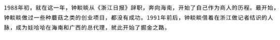 网络各处报道都称,钟睒睒曾经是娃哈哈代理,将自己低价拿到的娃哈哈口服液,转移到到湛江高价销售,从中赚取差价。