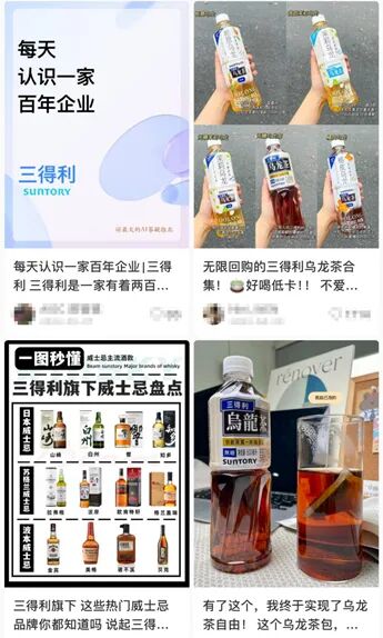 尤其是最近几年随着消费者健康意识的觉醒,很多人开始舍弃可口可乐等转而拥抱茶饮料,小红书上以“三得利”为主题的笔记更是数以万计。